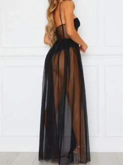 Female Dress, Solid Color Sleeveless Strappy See-Through Dress