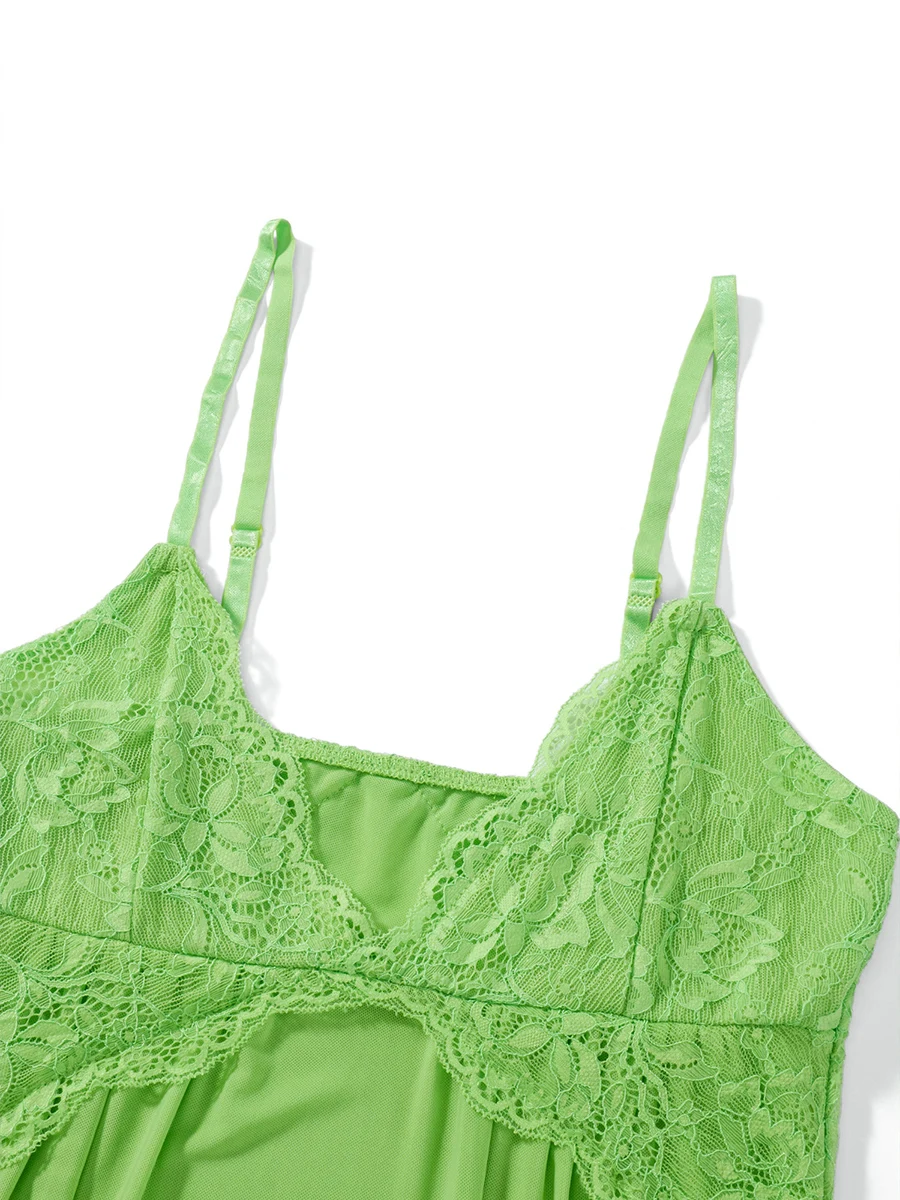 Women Lace Nightdress Lingerie Mesh See-Through V-Neck Sleeveless Sling Sleepwear Dress Irregular Hem Backless Underwear