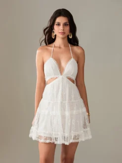 Women Lace White Dress Tie-Up Halter