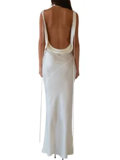 Women Long Dress, Sleeveless Draped Neck Backless Lacing Slim Fit Dress for Party Cocktail Evening